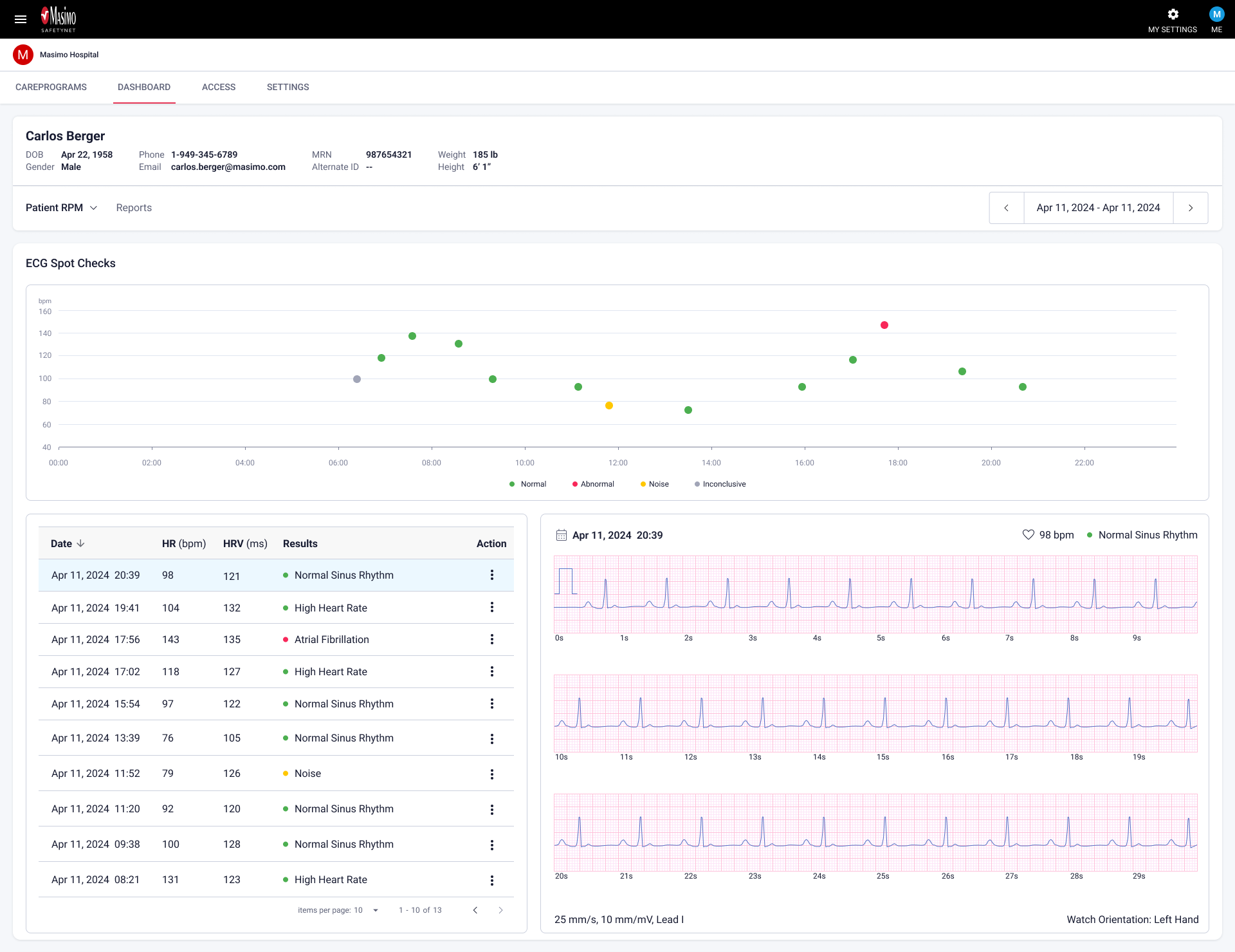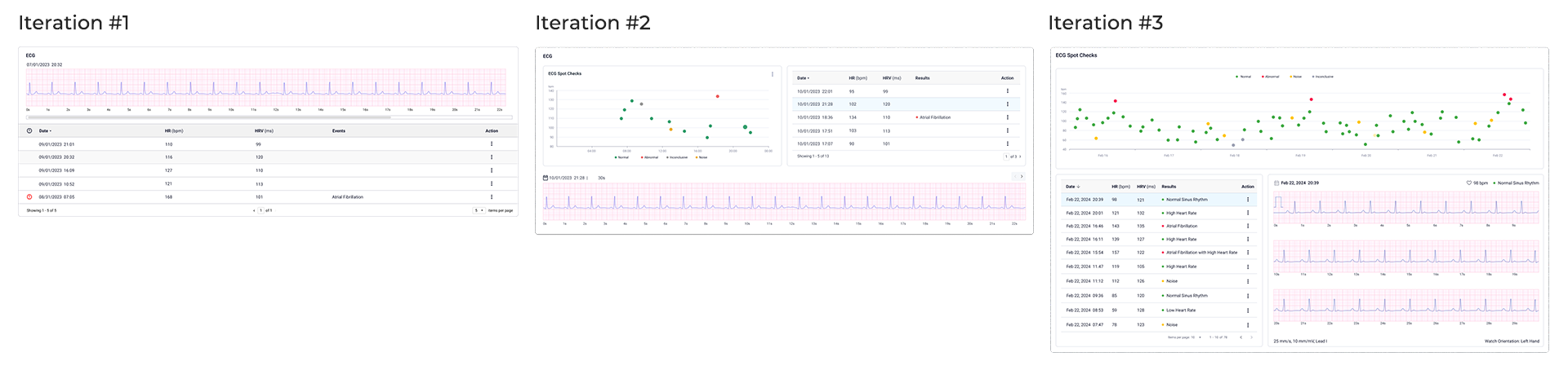 As part of the product roadmap, the Patient Details view was prioritized for the first release alongside the new ECG feature. Based on synthesizing insights from user interviews and research analysis, we found that clinicians were generally satisfied with this page, particularly the accuracy and clarity of the health data charts.