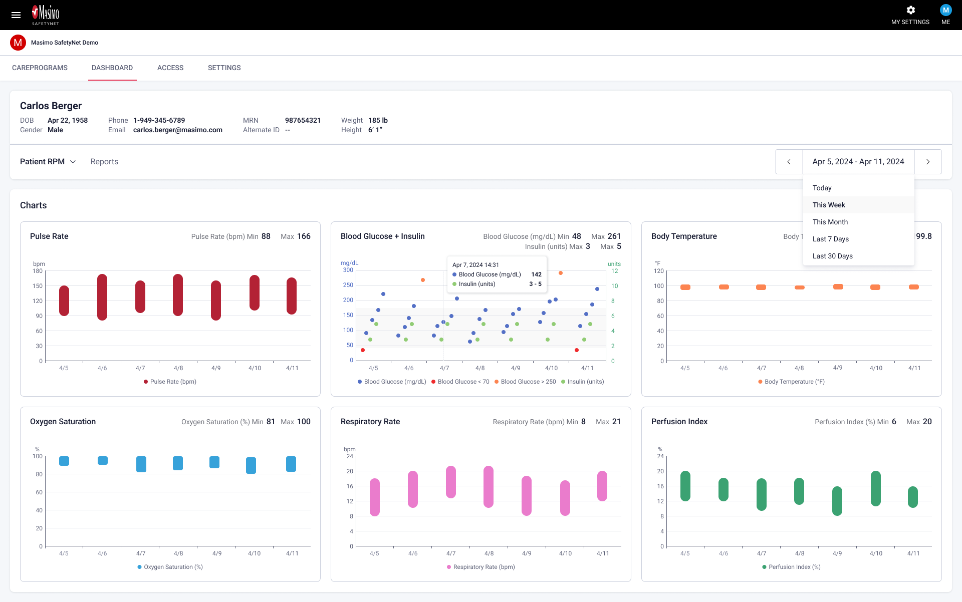 Masimo SafetyNet is a SaaS based virtual care platform offering remote patient monitoring and telehealth services. By integrating wearable devices with mobile phones, it tracks patients' vital signs at home. Health data is transmitted to hospitals via a web platform, enabling real-time monitoring and alerting clinicians to critical changes for timely intervention.