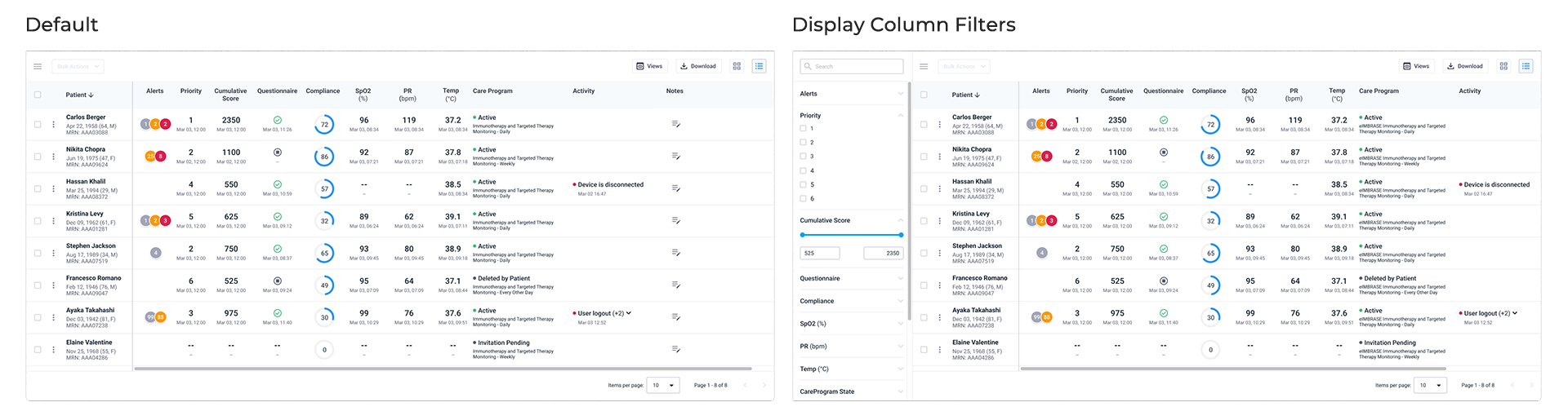 Following the release of the Patient Details page, I began redesigning the Patient Dashboard—a data-dense table with numerous actionable columns and filters.