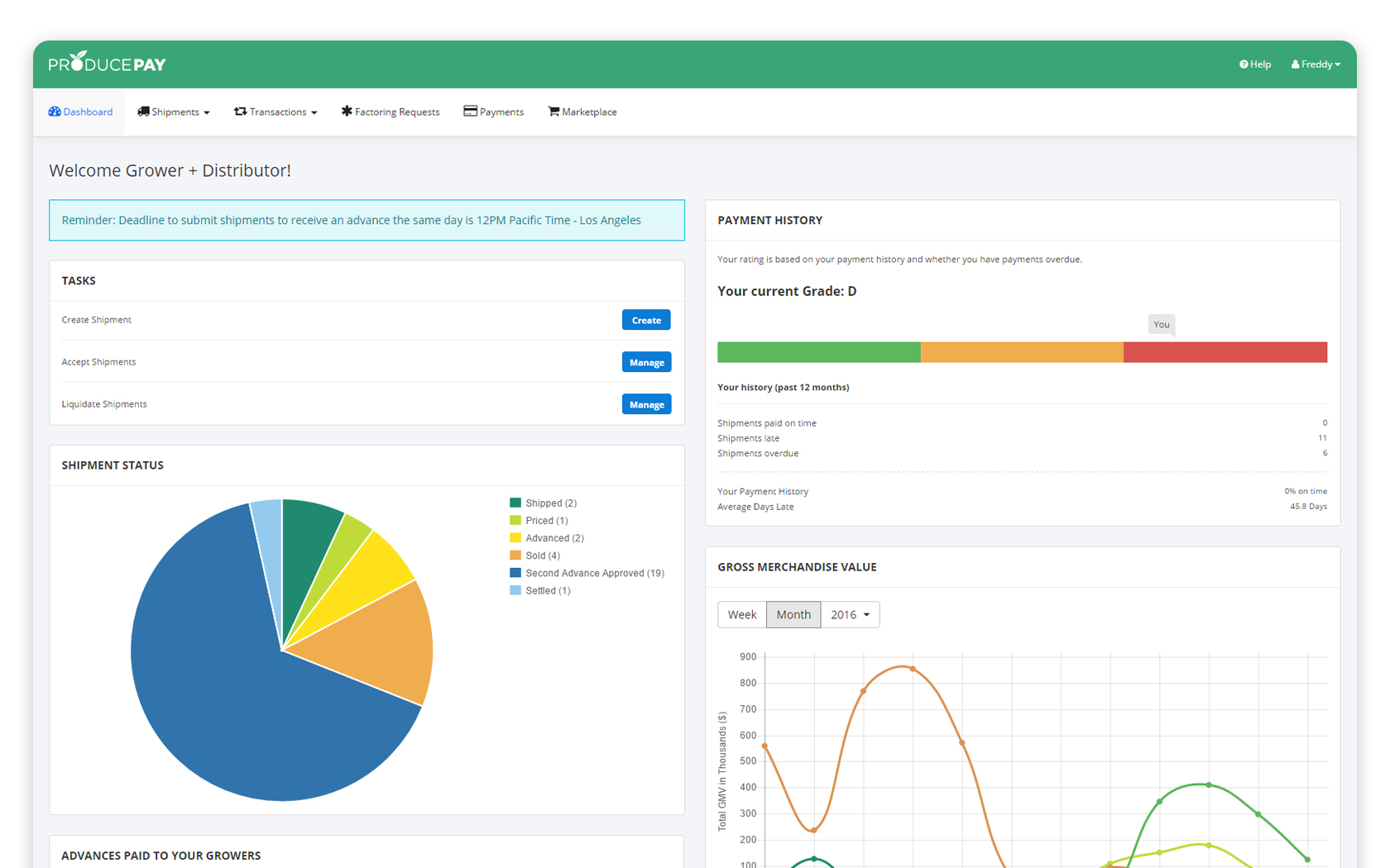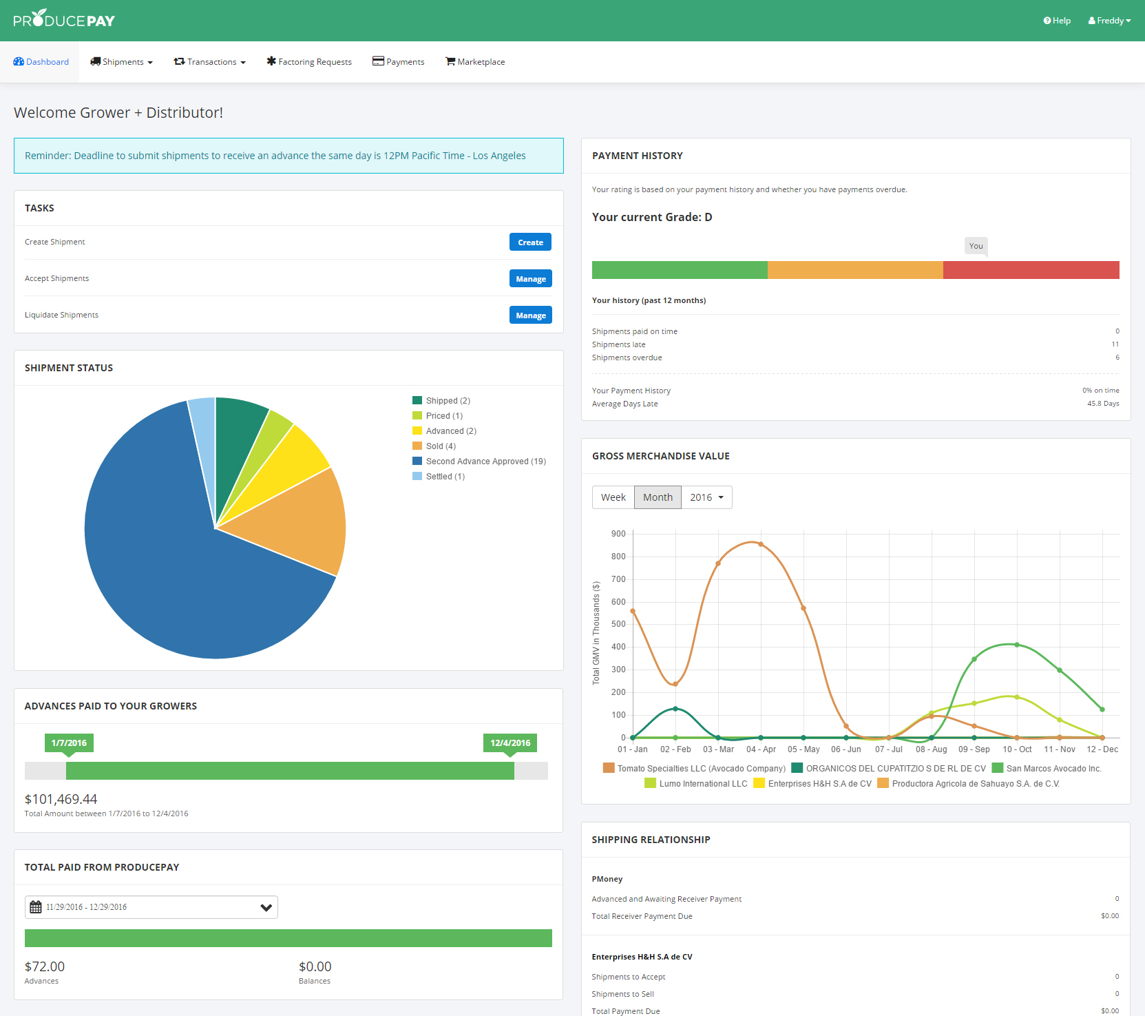 ProducePay Platform is a robust, enterprise-grade B2B web application that provides financial solutions and valuable data insights to the agriculture sector.
