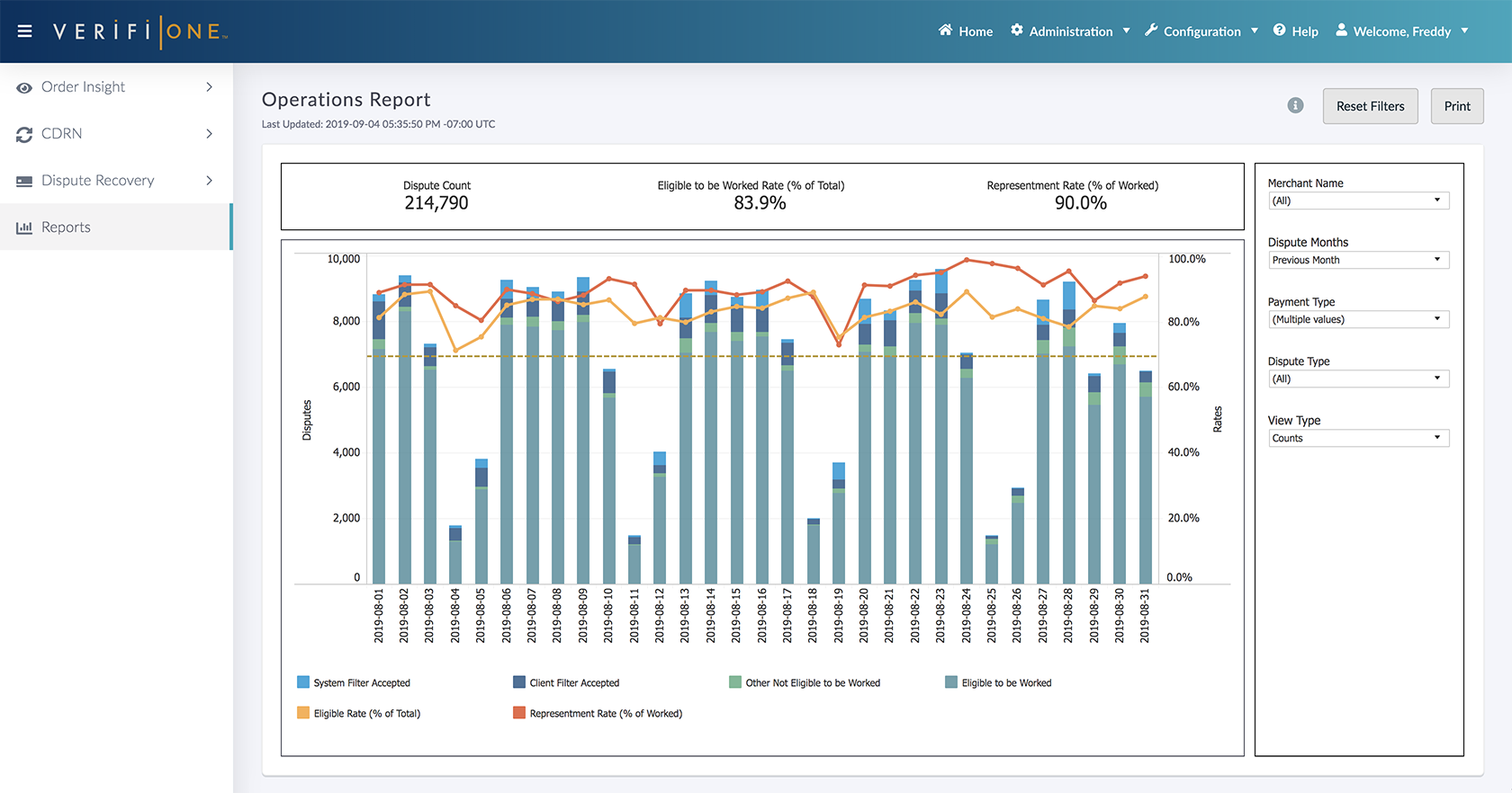 An advanced reporting and data visualization tool always had been one of the most highly requested features for Verifi-One. Instead of developing one from the ground up, we chose to integrate Tableau, leveraging its advanced charting features, seamless data connectivity, and robust filtering options. I worked closely with the data analytics team to design custom report layouts, charts, and color themes, ensuring a unified experience that seamlessly integrated with Verifi-One.